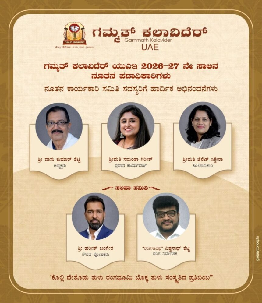 ದುಬೈ : ಯುಎಇಯ ಪ್ರಸಿದ್ಧ ತುಳು ನಾಟಕ ತಂಡ ಗಮ್ಮತ್ ಕಲಾವಿದರ್ ಯುಎಇ 2011ರಲ್ಲಿ ಸ್ಥಾಪನೆಗೊಂಡು ತುಳು ರಂಗಭೂಮಿಯನ್ನು ಸಕ್ರಿಯವಾಗಿ ಮರಳುನಾಡಿನಲ್ಲಿ ಬೆಳೆಸಿಕೊಂಡು ಬರುತ್ತಿದ್ದು, ಗುಣಮಟ್ಟದ ನಾಟಕ ಪ್ರದರ್ಶನಗಳು,…