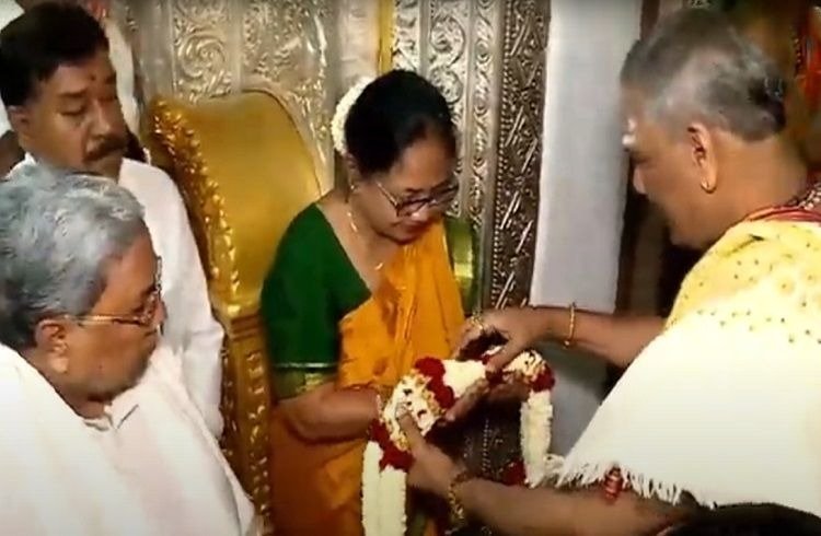 ಮೈಸೂರು : ವಿಶ್ವ ವಿಖ್ಯಾತ ನಾಡಹಬ್ಬ ದಸರಾ ವನ್ನು ಖ್ಯಾತ ಸಾಹಿತಿ ಬಾನು ಮುಷ್ತಾಕ್ ಅವರು ಉದ್ಘಾಟಿಸುವ ಮೂಲಕ ವಿದ್ಯುಕ್ತವಾದ ಚಾಲನೆ ನೀಡಿದರು. ಮೈಸೂರು ದಸರಾ ಉದ್ಘಾಟನೆಗೆ ಮುನ್ನ ಸಿಎಂ ಸಿದ್ದರಾಮಯ್ಯ ಈಡುಗಾಯಿ ಒಡೆದರು. ಬಳಿಕ ಚಾಮುಂಡೇಶ್ವರಿ ತಾಯಿಗೆ ವಿಶೇಷ ಪೂಜೆ ಸಲ್ಲಿಸಿದರು.