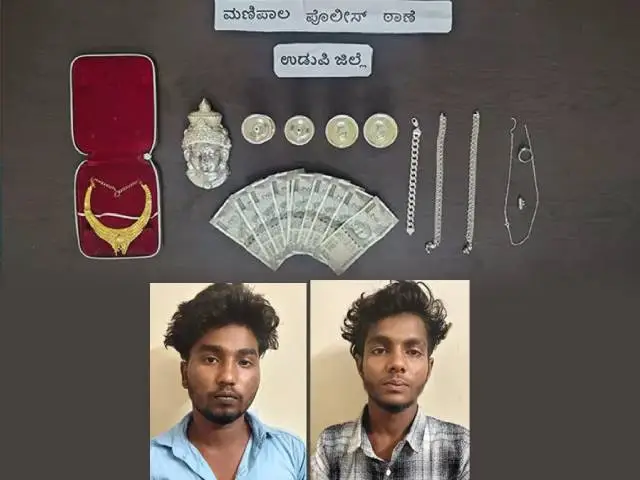 ಉಡುಪಿ: ಹಾಡುಹಗಲೇ ಮನೆಗೆ ನುಗ್ಗಿ ಲಕ್ಷಾಂತರ ರೂ. ಮೌಲ್ಯದ ನಗ ನಗದು ಕಳವುಗೈದ ಪ್ರಕರಣಕ್ಕೆ ಸಂಬಂಧಿಸಿ ಕ್ಷಿಪ್ರ ಕಾರ್ಯಾಚರಣೆ ನಡೆಸಿದ ಮಣಿಪಾಲ ಪೊಲೀಸರು, 12ಗಂಟೆಯೊಳಗೆ ಪ್ರಕರಣ ಬೇಧಿಸಿ ಆರೋಪಿಗಳನ್ನು ಬಂಧಿಸುವಲ್ಲಿ ಯಶಸ್ವಿಯಾಗಿದ್ದಾರೆ.