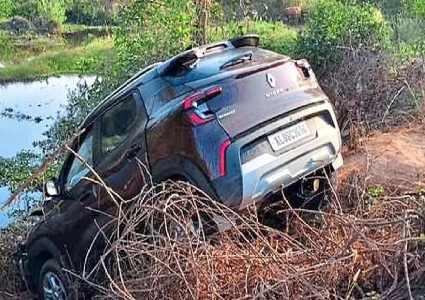 ಉಪ್ಲಾಡಿ ಹೊಳೆ ಸಮೀಪ ತಲುಪಿದಾಗ ಚಾಲಕನ ನಿಯಂತ್ರಣ ತಪ್ಪಿ ಕಾರು ಮೊದಲು ವಿದ್ಯುತ್ ಕಂಬಕ್ಕೆ ಡಿಕ್ಕಿ ಹೊಡೆದು, ನಂತರ ಹೊಳೆ ಬದಿಯ ಸಿಮೆಂಟ್ ಪಿಲ್ಲರ್ ಮೇಲೆ ಹತ್ತಿ ನಿಂತಿದೆ. ಆವೆ ಮಣ್ಣಿನ ಹೊಂಡಕ್ಕೆ ಕೇವಲ ಒಂದು ಅಡಿ ಅಂತರದಲ್ಲಿ ಕಾರು ನಿಂತಿದ್ದರಿಂದ ಭಾರೀ ದುರಂತ ತಪ್ಪಿದಂತಾಗಿದೆ.